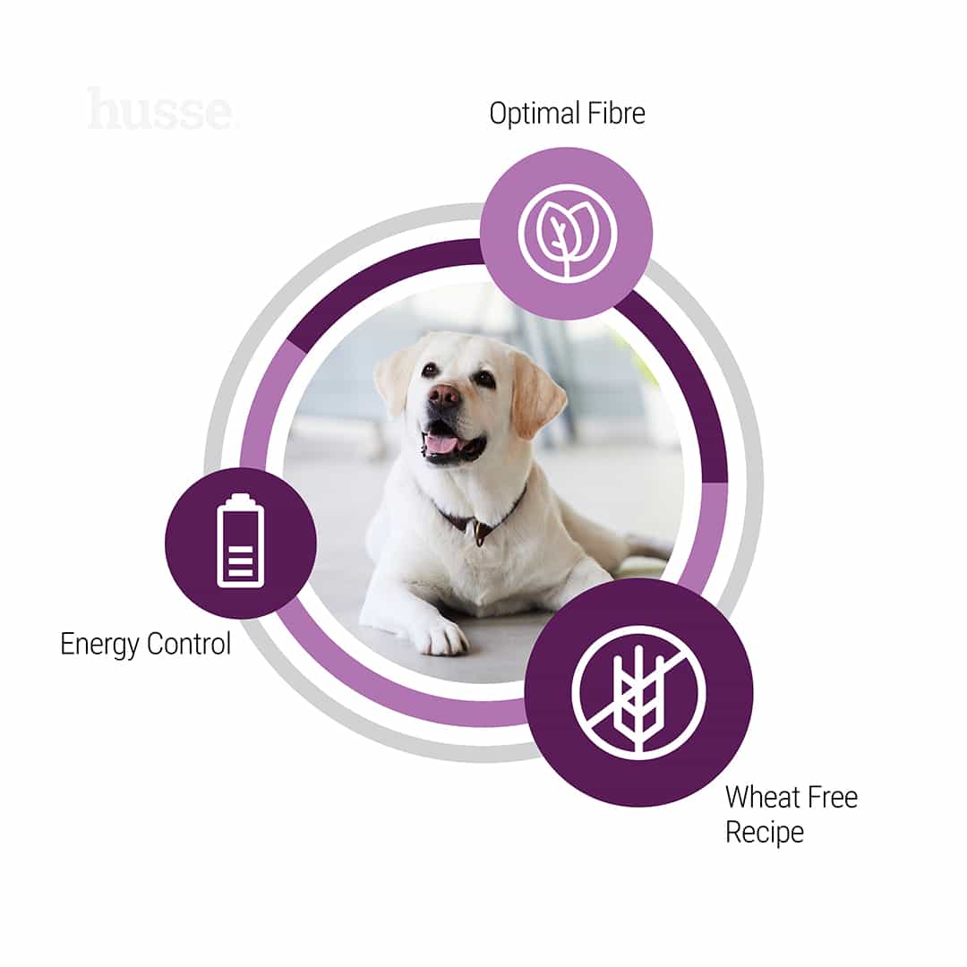 Formulan är berikad med kostfibrer som bidrar till ökad mättnadskänsla och hjälper hunden att hålla en stabil energibalans. Prebiotika stödjer en balanserad tarmflora och god matsmältning, medan mineraler bidrar till hundens allmänna hälsa.